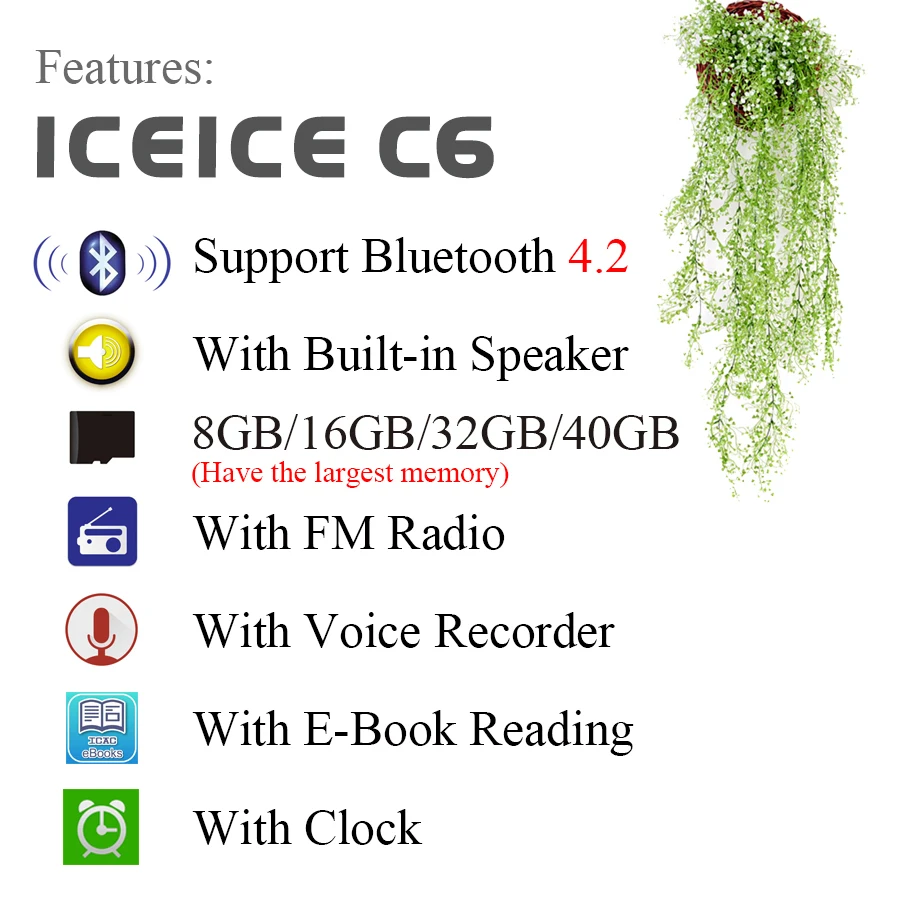 ICEICE MP3 Player with Bluetooth Speaker Touch Keys and Built-in 32GB 64GB 128GB HiFi Portable Walkman with Radio /FM/ Recording
